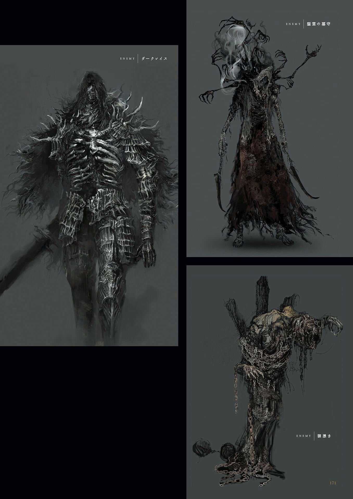 Draegore Nagendra On Twitter Concept Art Of The Skeletal Darkwraith And Grave Warden From The Dark Souls 3 Design Works Book The Creature Wrapped In Cloth And Strung Up Was Apparently Planned